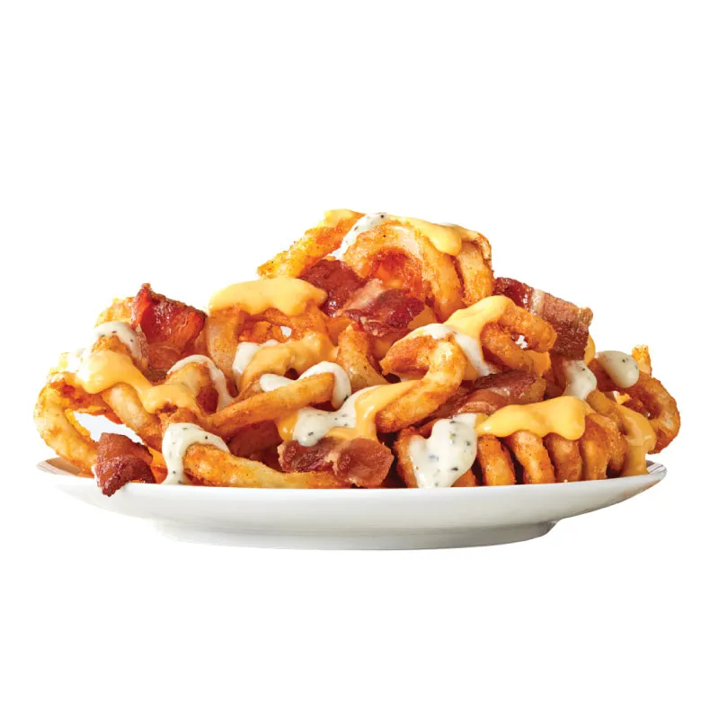 Solo para carnívoros; media libra del famoso Roast Beef de Arby's, cortado finamente y servido calientito en pan de cebolla, acompañado de salsa de queso Cheddar y aderezo Red Ranch.